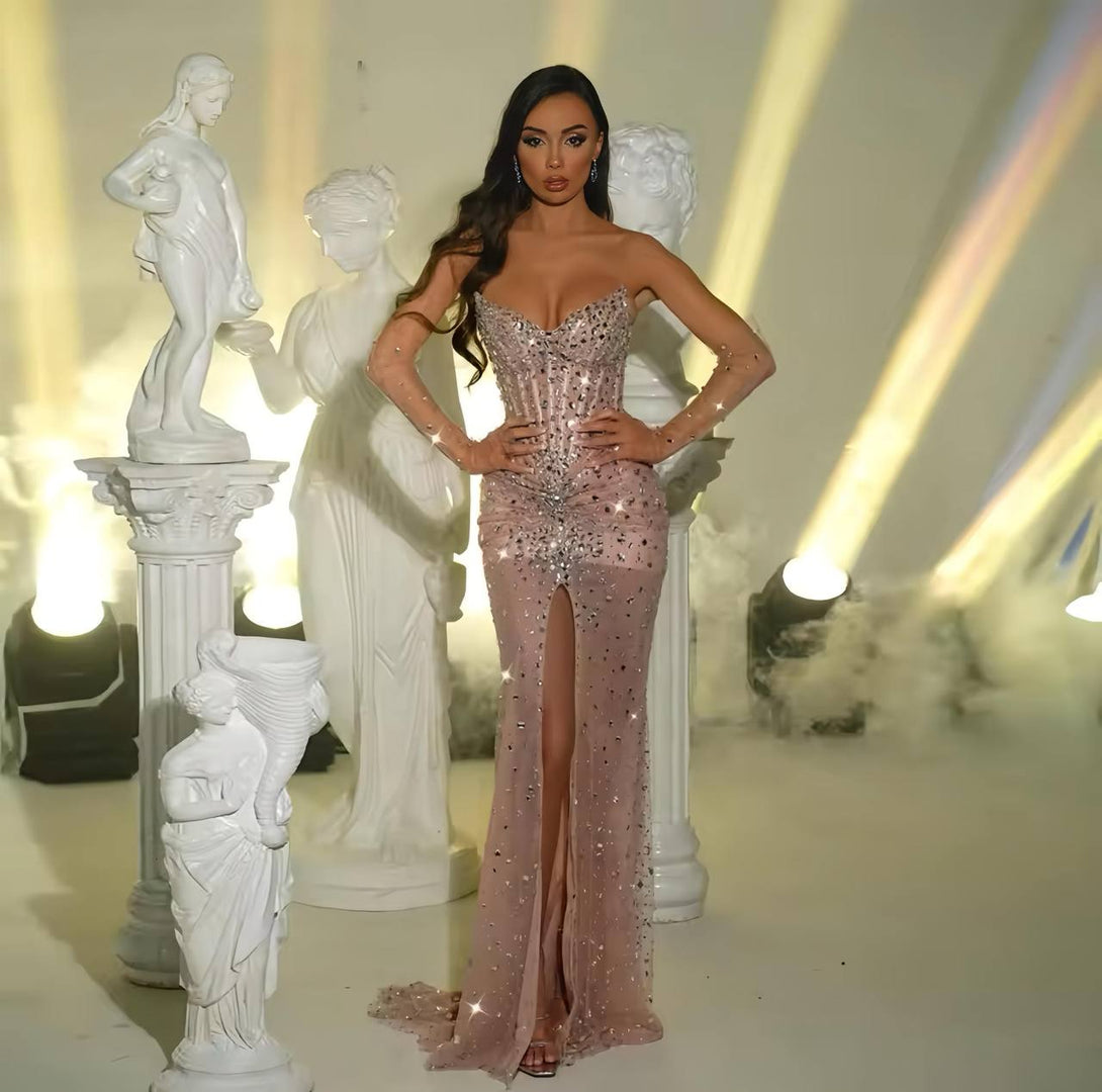 EraPosh GlimmerTulle Trumpet Slit Dress