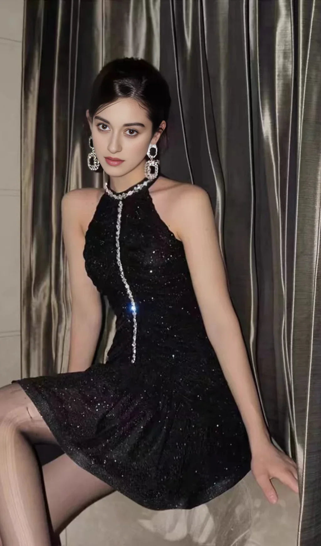 EraPosh GlowSculpt Spliced Sequin Gown