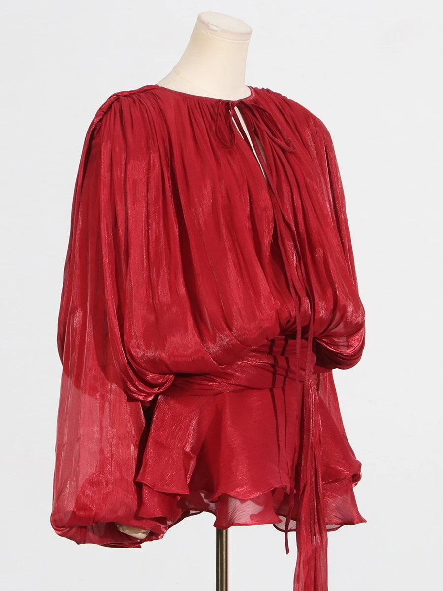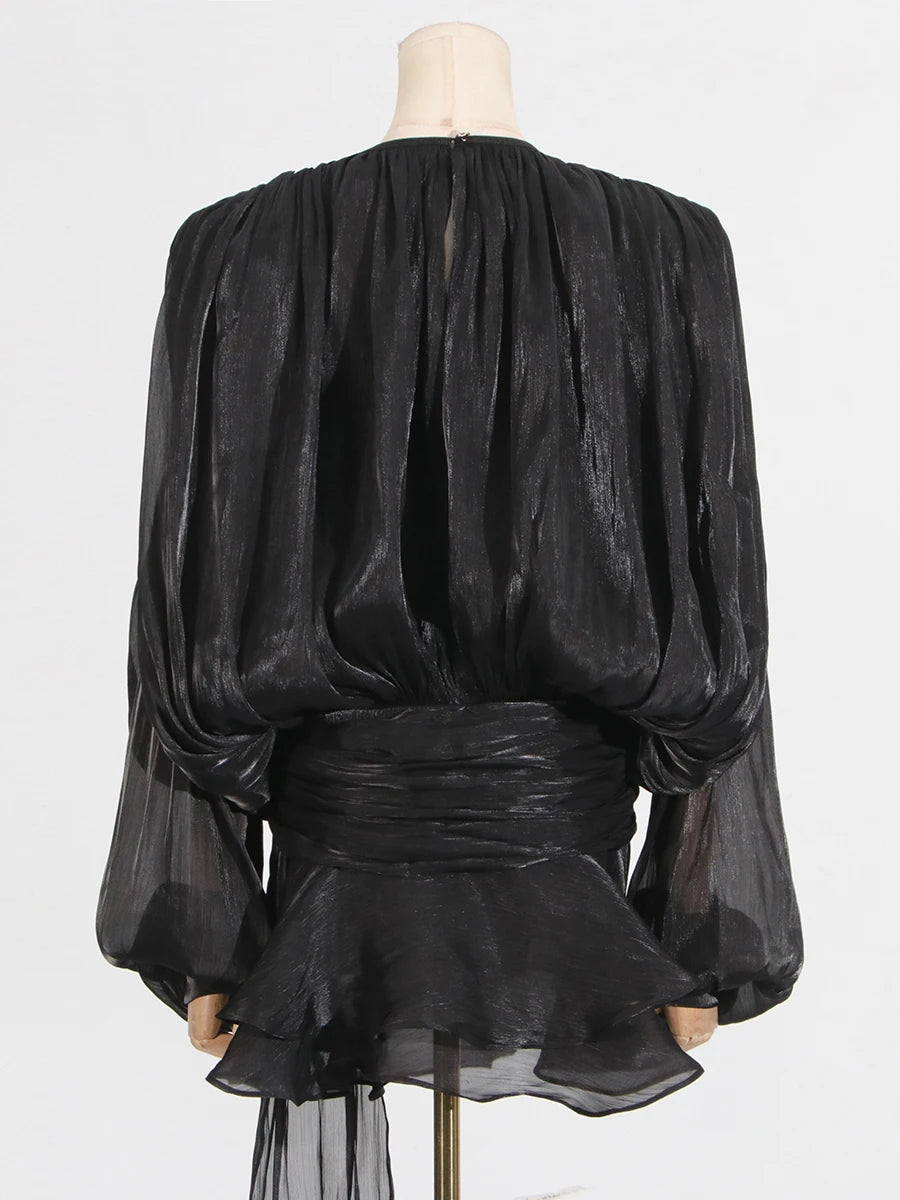 2. Flowy and Dramatic Silhouette: with voluminous sleeves and a ruffled hem, this top creates a dynamic and eye - catching silhouette that adds a touch of drama to your outfit.