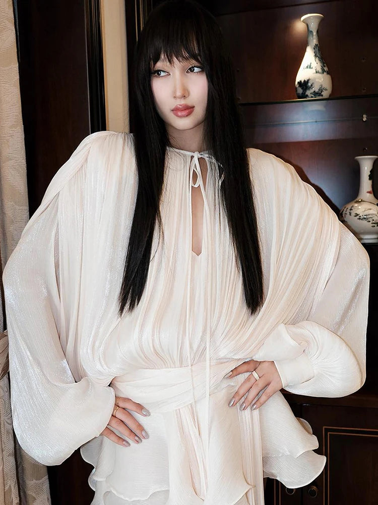 Adjustable Tie - neck Design the tie - neck feature allows you to customize the fit and style, from a deep V - neck for a bold look to a more modest closure, suiting different occasions and personal preferences.